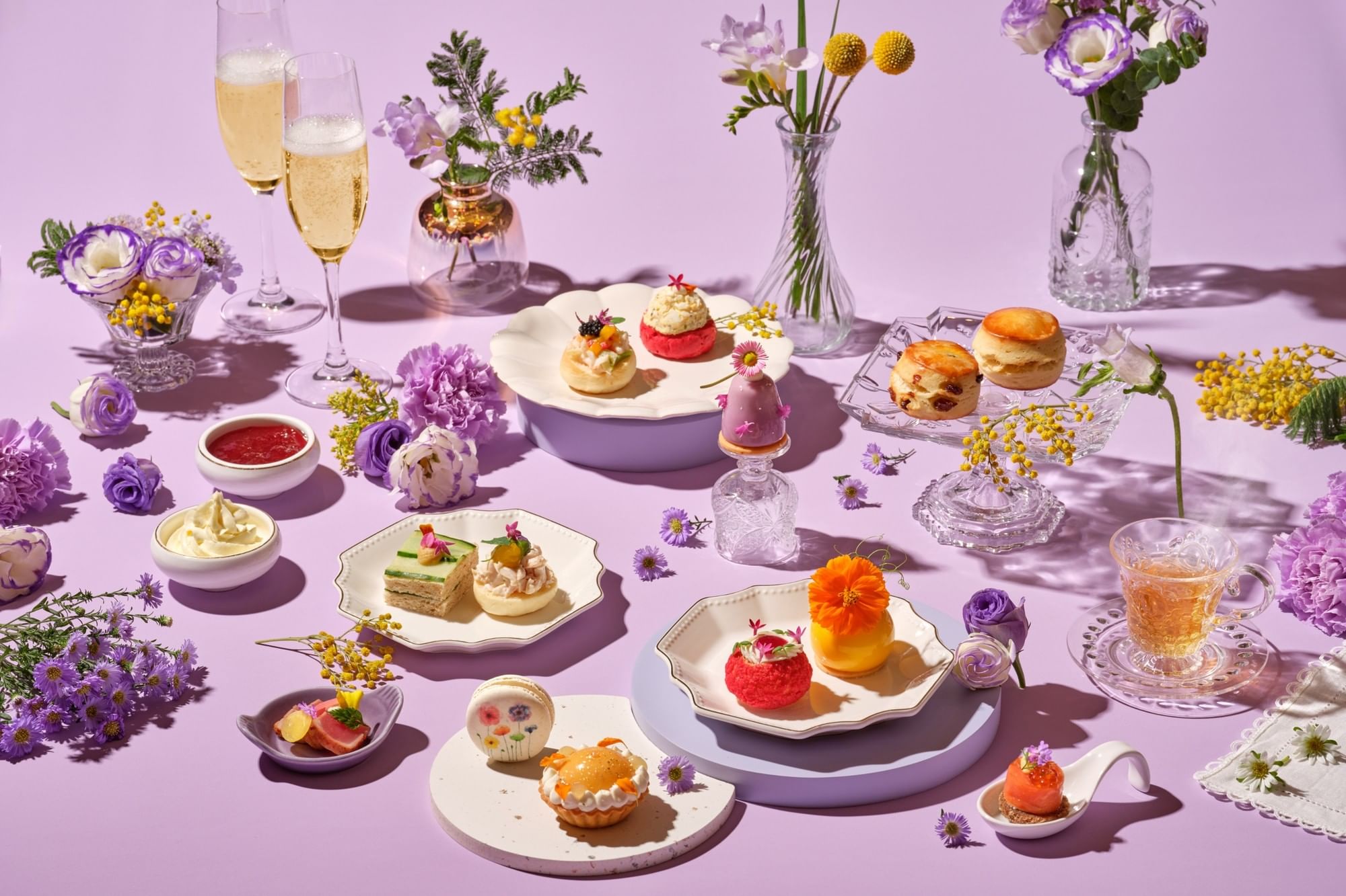 Embrace the season of renewal with this botanical-themed repertoire. Lively notes of citrus and blossoms shine through the sweet creations, perfectly balanced with a savoury selection. The experience includes freshly baked scones with clotted cream and jam, accompanied by a premium selection from TWG Tea and Bacha Coffee. For an extra touch of celebratory sparkle, why not elevate your indulgence with free-flow champagne?