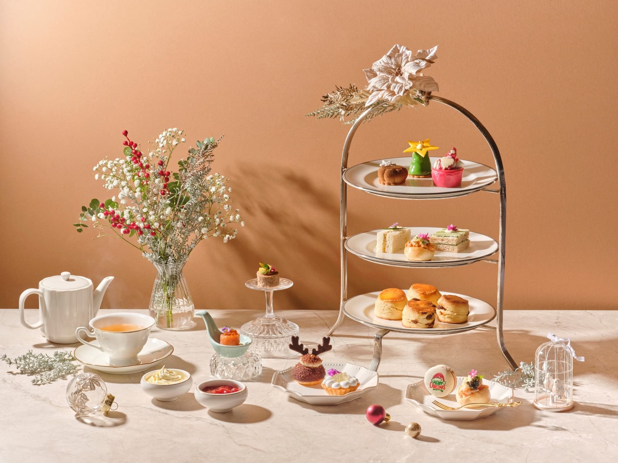 A delightful Christmas feast imagined in delicate teatime treats, perfect for cosy and elegant year-end reunions.