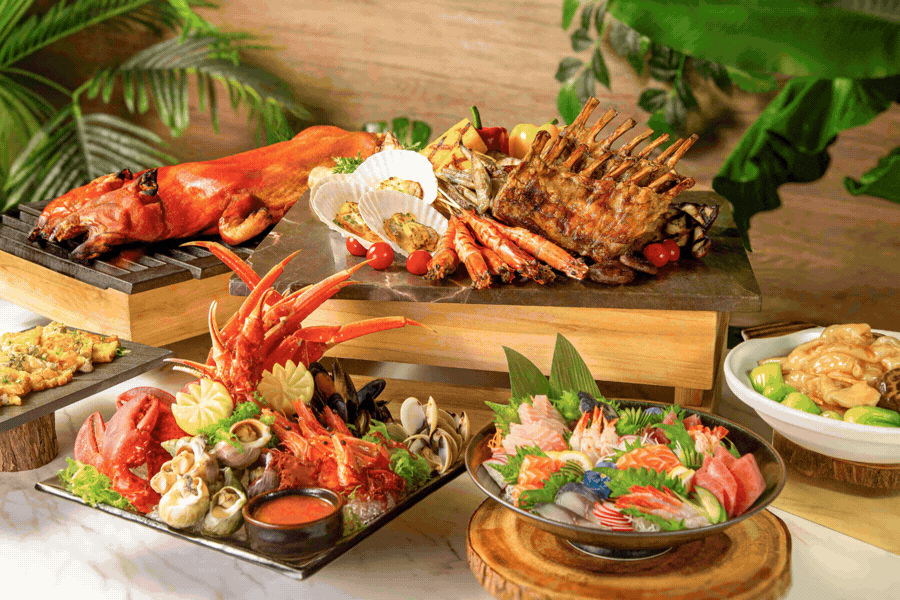 Begin with our refined Seafood on Ice, featuring snow crab legs, clams and chilled prawns, with Canadian lobster available at weekends. Grill Station takes centre stage with tempting highlights such as Garlic Butter Scallops, Salted King Prawns, Lamb Chops, and more. At weekends, savour the show-stopping Whole Roasted Suckling Pig.