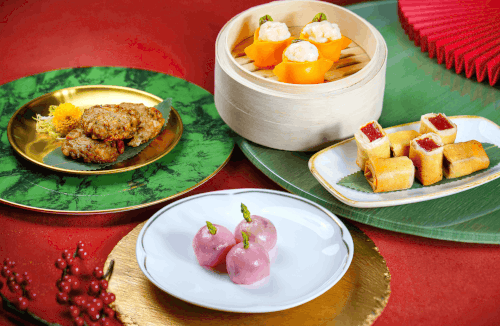「富」足新春贺年点心荟萃多款巧手制作,每款皆蕴含独特祝愿:「三星拱照」-鲍鱼好市大利烧卖,寓意福禄寿齐临;「如意吉祥」-愉耳龙虾饺,象征事事顺心;「鸿运当头」-红菜头野菌素饺,为您注入活力;「马到功成」-凤凰煎糯米鸡,带来灿烂前程。每一口,都是对新年的美好祈愿。