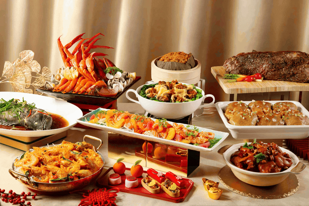甜品方面同樣蘊含祝福,特備賀年甜點包括笑口常開 — 開心果車厘子慕絲蛋糕、大吉大利 — 柑橘芝士蛋糕及福運連綿 — 幸運曲奇。此外,亦供應多款日常精選甜點:即製雞蛋仔、自家製精選蛋糕、意式西西里忌廉卷、Mövenpick 雪糕,以及每日輪換的新加坡傳統甜品,為您的團年饗宴錦上添花。