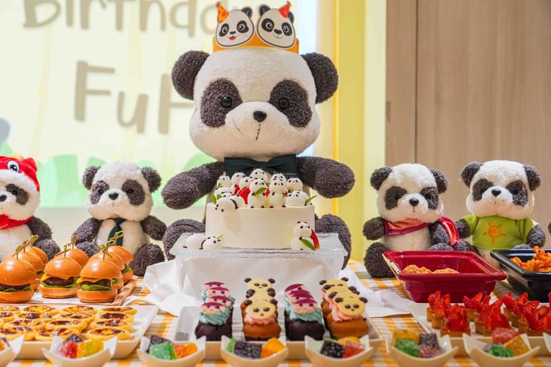 派對期間,賓客可免費無限暢飲蘋果汁、橙汁及汽水,每位參與的小童更可獲贈雪糕一杯。此外,延長使用派對房間時間,第 3 小時可享 5 折優惠,並免費獲贈 1.5 磅重的熊貓士多啤梨蛋糕一個,讓您的慶祝時刻倍添完美。